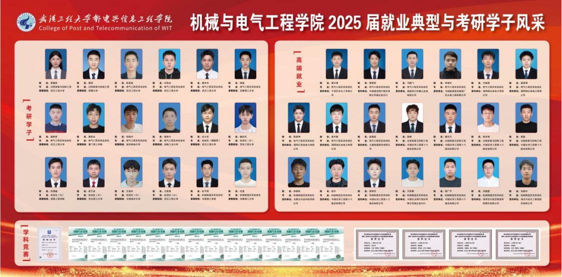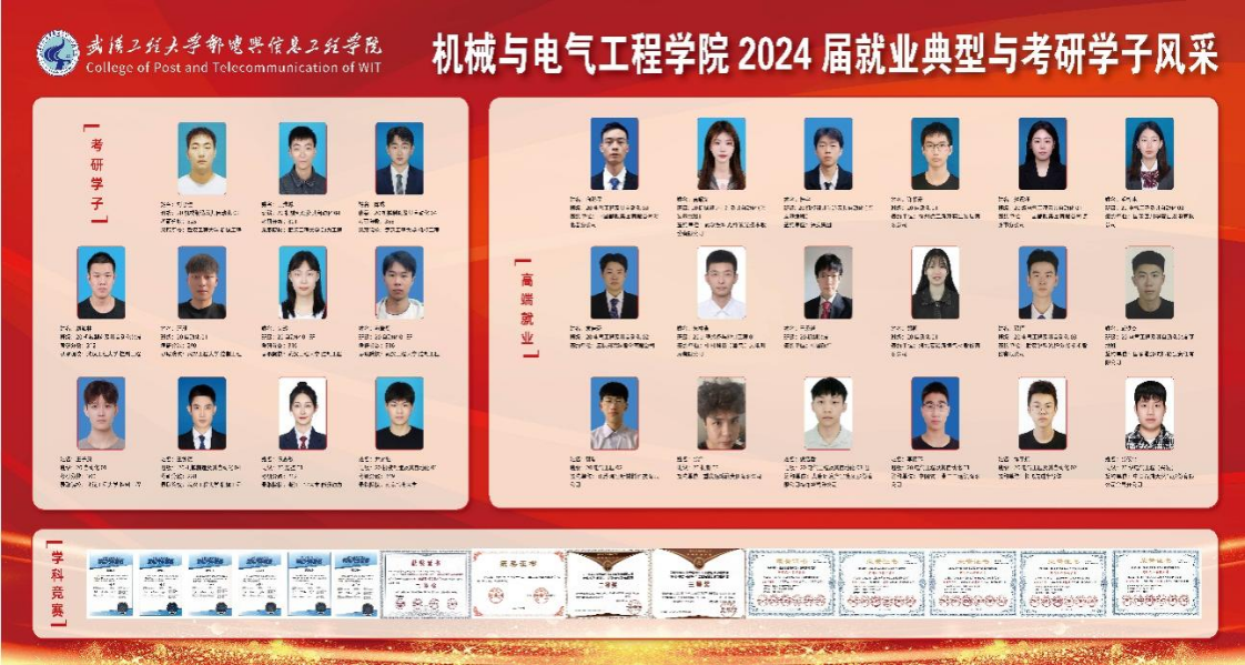 武汉工程大学邮电与信息工程学院机械与电气工程学院优秀学子在学科竞赛和创新创业领域屡获佳绩,他们是学院的荣光,也是激励各届学子前行的动力。