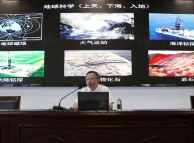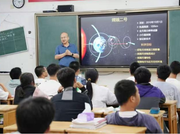 ▲王焰新院士、谢树成院士、章军锋教授、肖龙教授为中学生讲授先修课