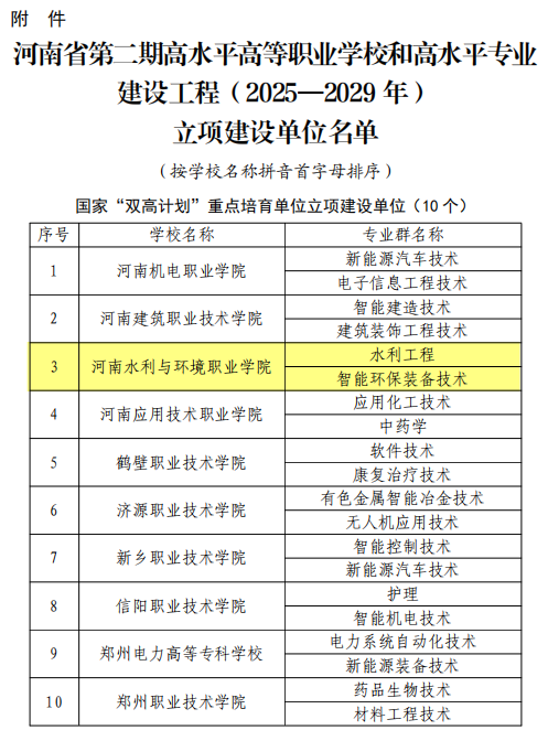 重磅喜讯!近日,河南省教育厅、财政厅联合发布《关于公布河南省第二期高水平高等职业学校和高水平专业建设工程(2025—2029年)立项建设单位的通知》(教职成〔2026〕1号),正式公布立项建设单位名单。