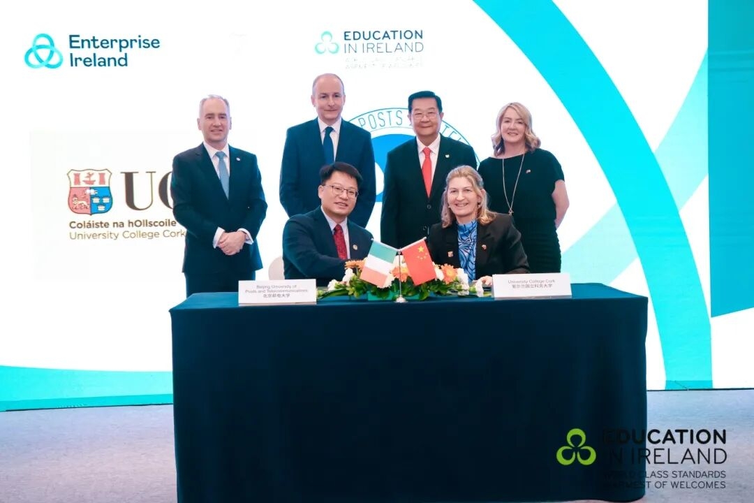 随后在举行的签约仪式环节,爱尔兰总理米哈尔·马丁、中国教育国际交流协会会长刘利民、爱尔兰贸易与爱尔兰驻华大使欧博仁博士与爱尔兰贸易与科技局亚洲区董事马柯娜女士等共同见证了北京邮电大学与爱尔兰科克大学(University College of Cork)签署合作协议。双方将在信息通信技术领域建立全面合作关系,共同开展多层次人才培养和科研创新合作,为信息通信技术领域的发展注入新的活力。