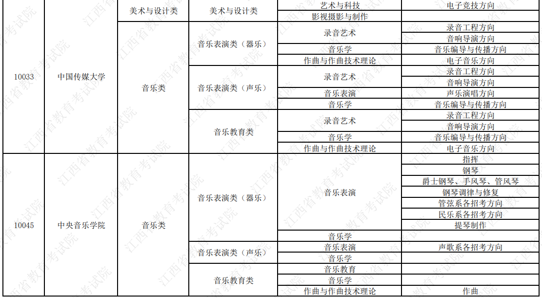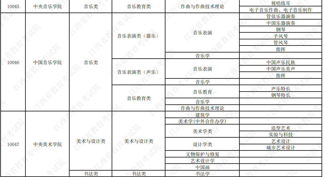 更多内容:2026年拟在赣招生高校艺术类校考专业与子科类对照信息一览表(点击查看)
