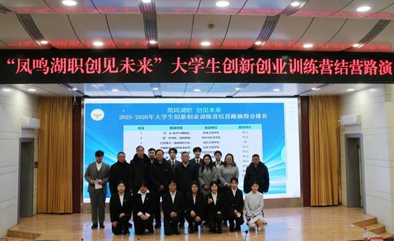 (本网讯 王宇阳 黄灿)1月7日下午,“凤鸣湖职·创见未来”创赛训练营结营路演活动在西区文博馆学术报告厅顺利举行。校党委委员、副校长梅重,孝感市就业管理局副局长陈琪出席活动,7位资深创新创业专家担任评委,300余名师生共同见证了学员们历时数月学习与实践的成果绽放。