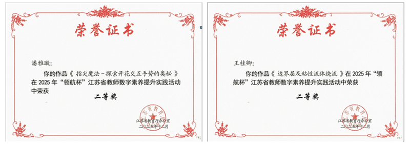 “领航杯”江苏省教师数字素养提升实践活动是由省教育厅主办的覆盖多个学段的教师数字素养竞赛,旨在促进信息技术与教育教学的融合创新,提升教师的数字化教学能力。在2025年实践活动中,高等教育组共有来自全省132所高校报送的317件作品参加评比,机电系潘雅璇、王桂卿两位老师提交的微课视频作品均荣获二等奖。