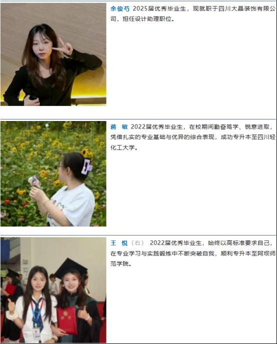 学院已与资阳市苌弘装饰工程有限公司、蒙娜丽莎瓷砖、佳途教育、慕思家居、汤姆客文化艺术培训有限公司、瓷溪教育咨询(成都)有限公司等众多专业相关企业签约合作,为学生提供实习平台。学生毕业之后可以选择进入签约合作企业工作,或自主选择川渝地区上千家行业相关公司实习和就业。