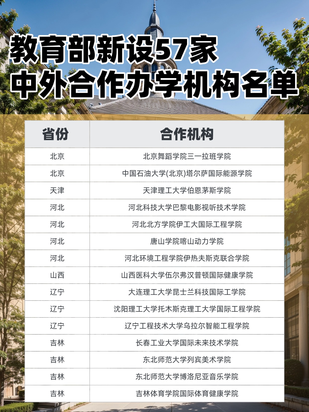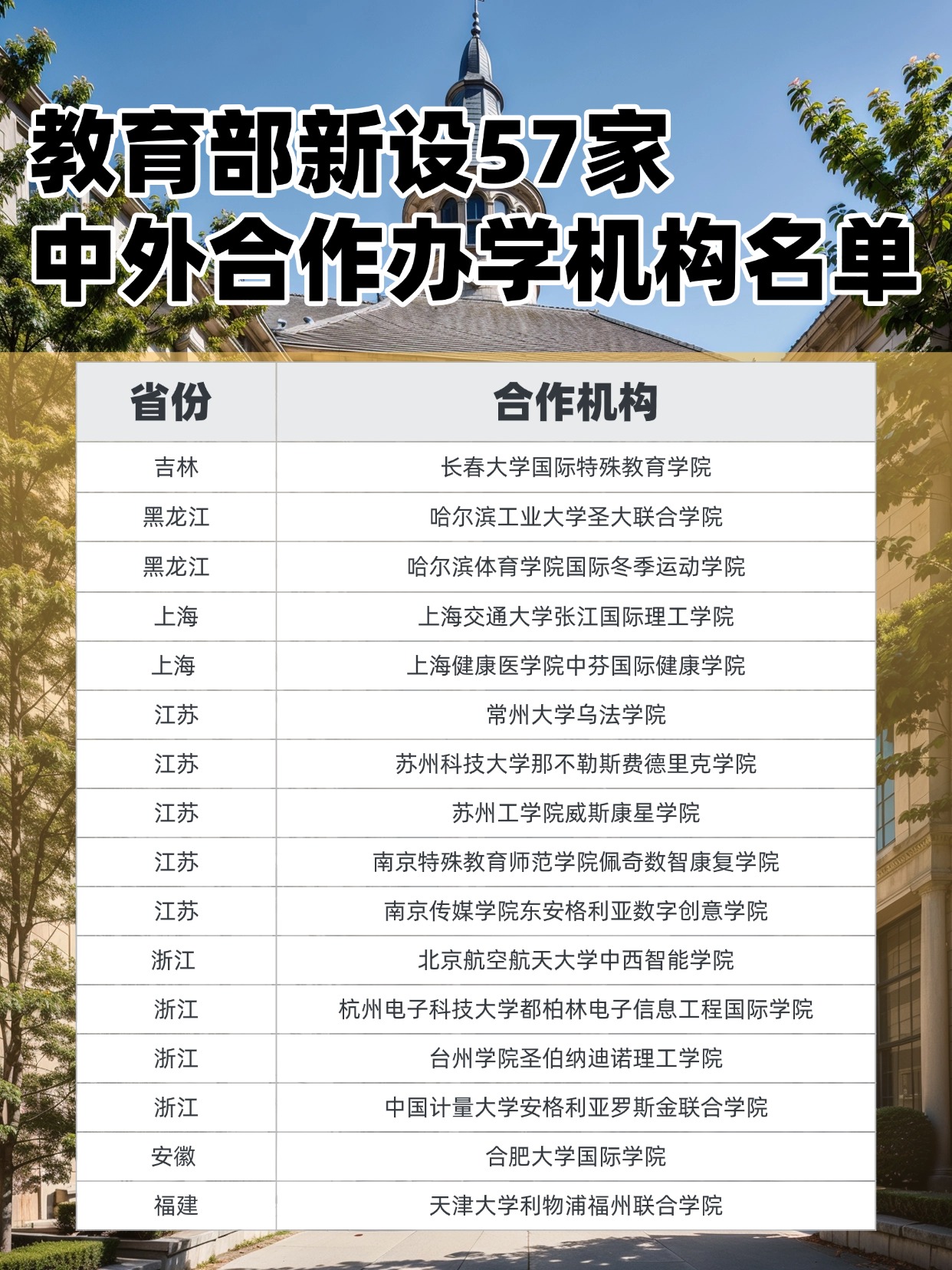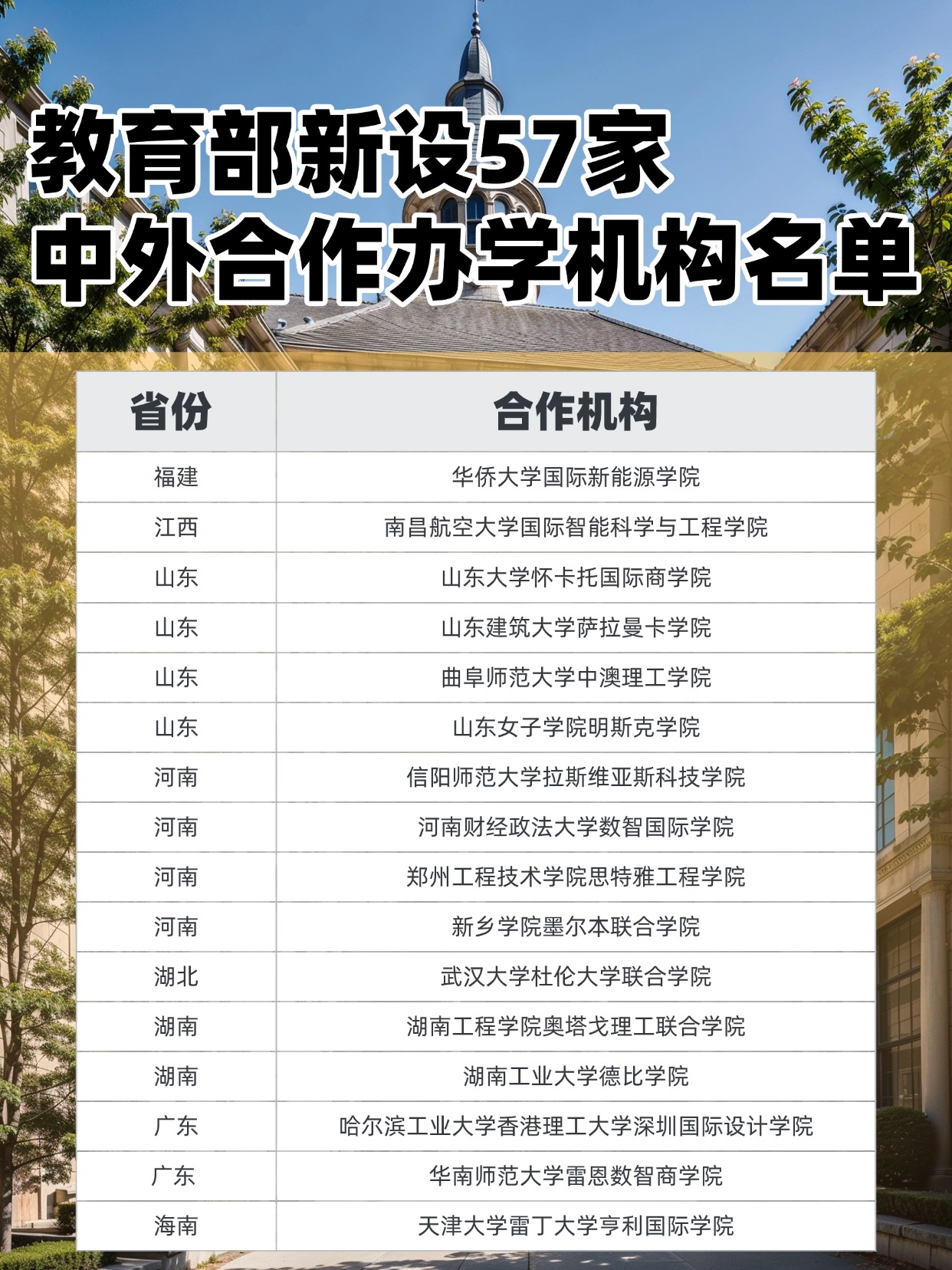 下面是教育部公布的新设的57家中外合办机构名单,一起了解!