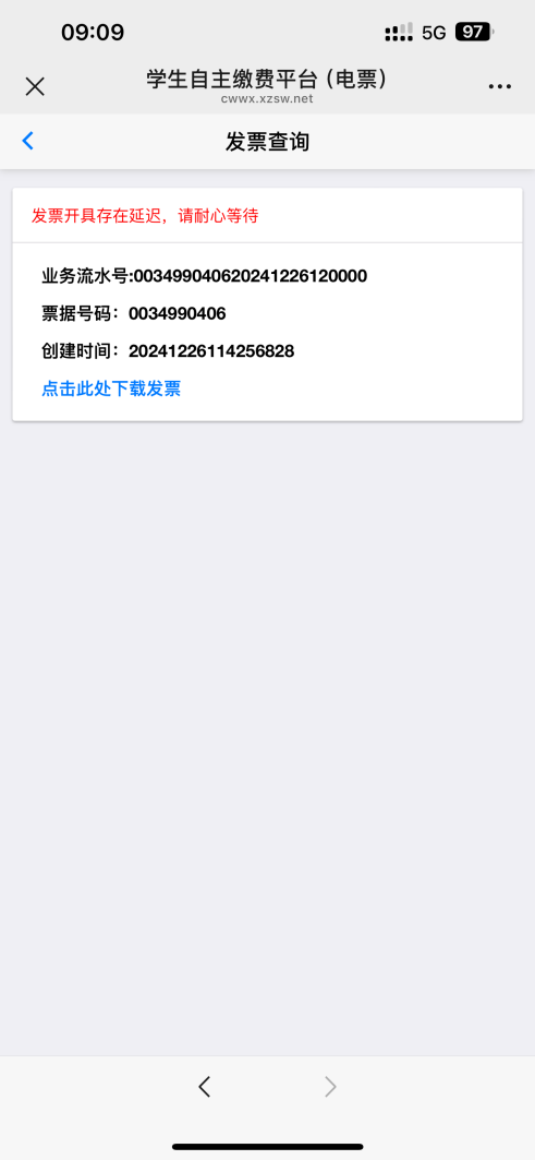 进入【徐生学工】微信公众号,点击【学生服务】版块【学费住宿费】栏目跳转【学生自主缴费平台(电票)】,点击【发票查询】输入身份证号,点击查询和下载发票。