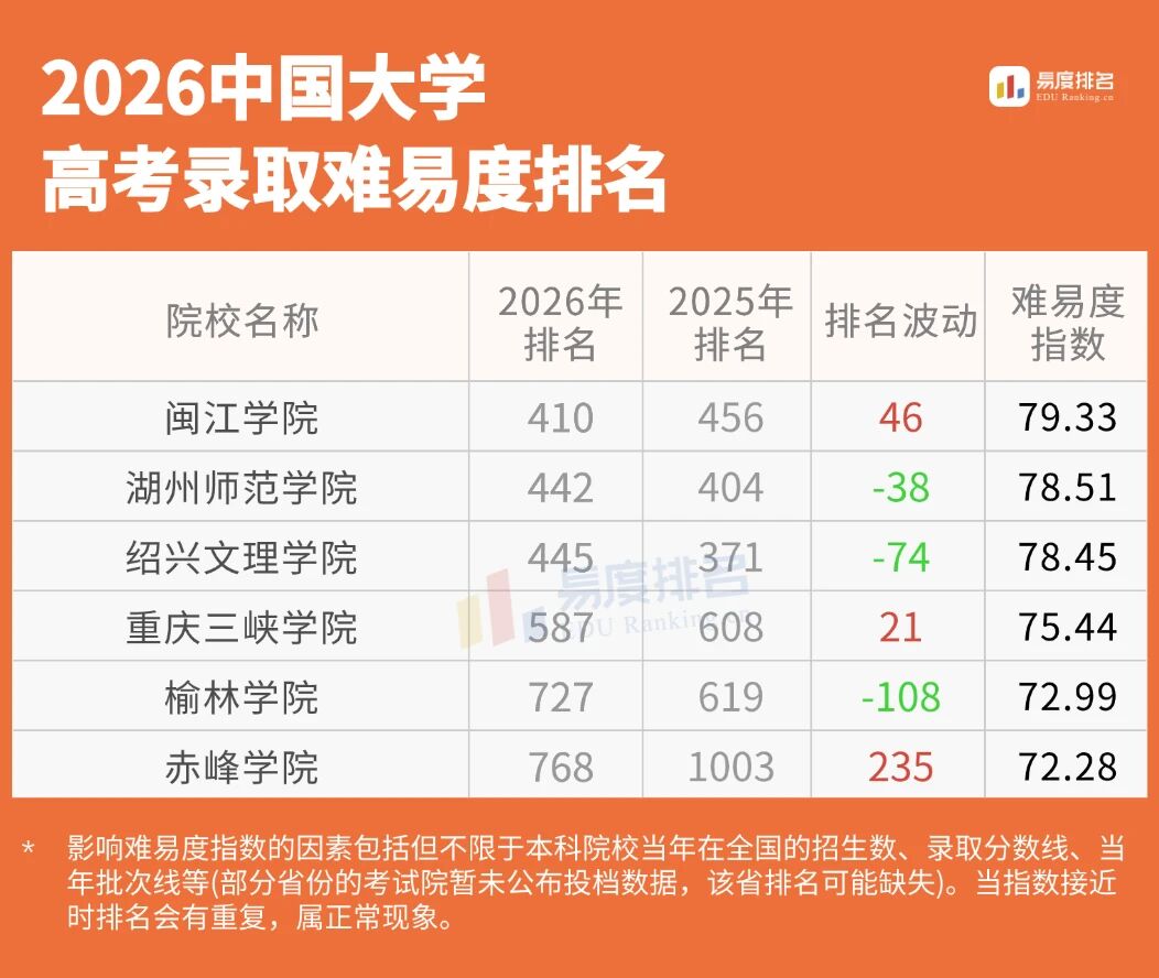 更名升格校正式更名落地后,浙江(绍兴大学、湖州师范大学)、福建(闽江大学)等经济发达地区院校,难度涨幅会更显著;赤峰、榆林等偏远地区院校,涨幅平缓但不会下跌。