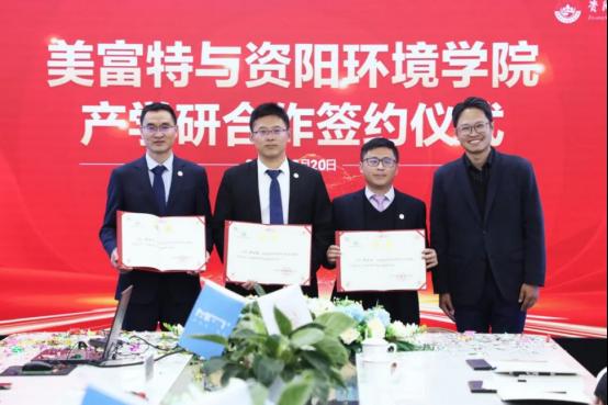 学院联合四川奥恒、卓越四方等公司共同出资,三方合力汇聚产业链上下游的关键设施与技术,共投共建“奥恒环保产教融合实践基地”(建筑面积达2.6万平方米),涵盖实训区、研发区、生产区、展销区四大区域,下设工业废水零排放研发中心、全系列水质分析测试中心、资阳市河湖长制研究院、资阳市生态文明可持续发展研究中心、环境工程产学研联合实验室、双碳研究院等。