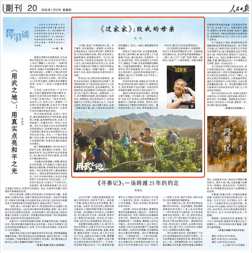 本网讯1月8日,《人民日报》副刊刊发了我校成龙影视传媒学院院长成龙的署名文章《〈过家家〉:致我的母亲》。