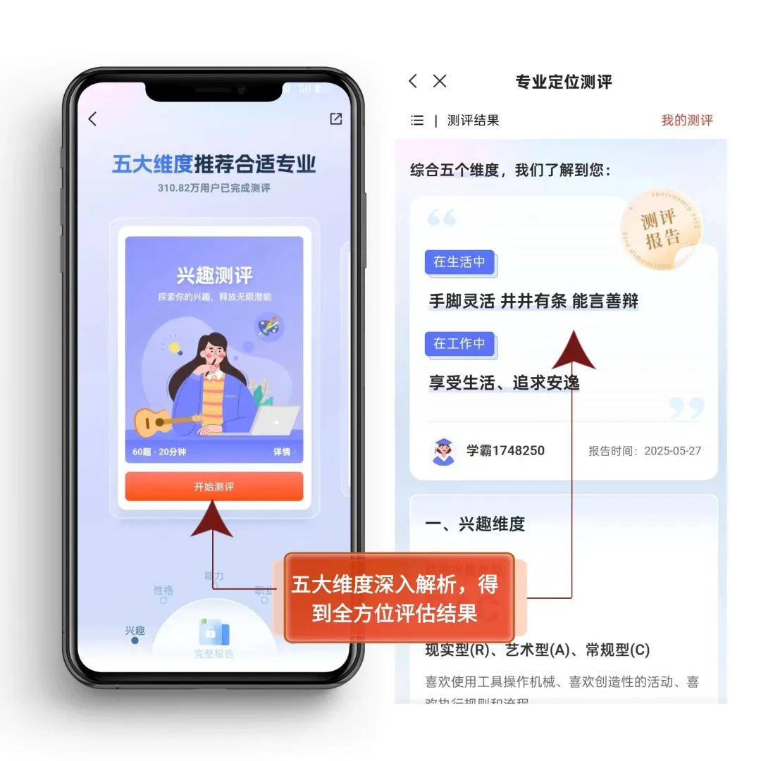 当然,专业选择还需结合个人兴趣与分数情况,若你想更精准地匹配自身条件与目标院校及专业,使用优志愿专业测评功能,整合五大维度助孩子全面认识自己,依据测评结果选择专业,避免后悔“入坑”的情况出现。毕竟适合自己的,才是好专业!