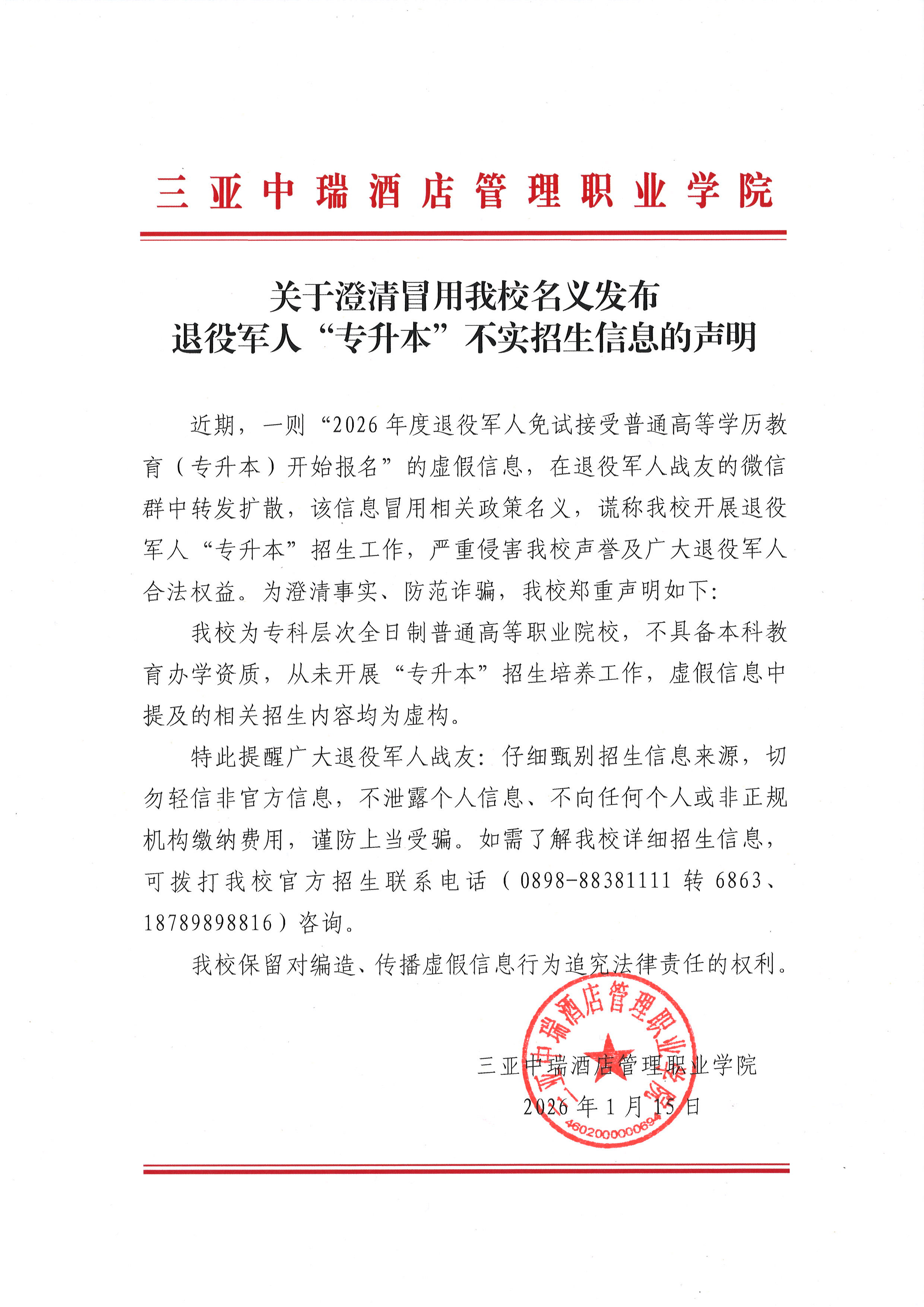 | 来源:三亚中瑞酒店管理职业学院 1210
