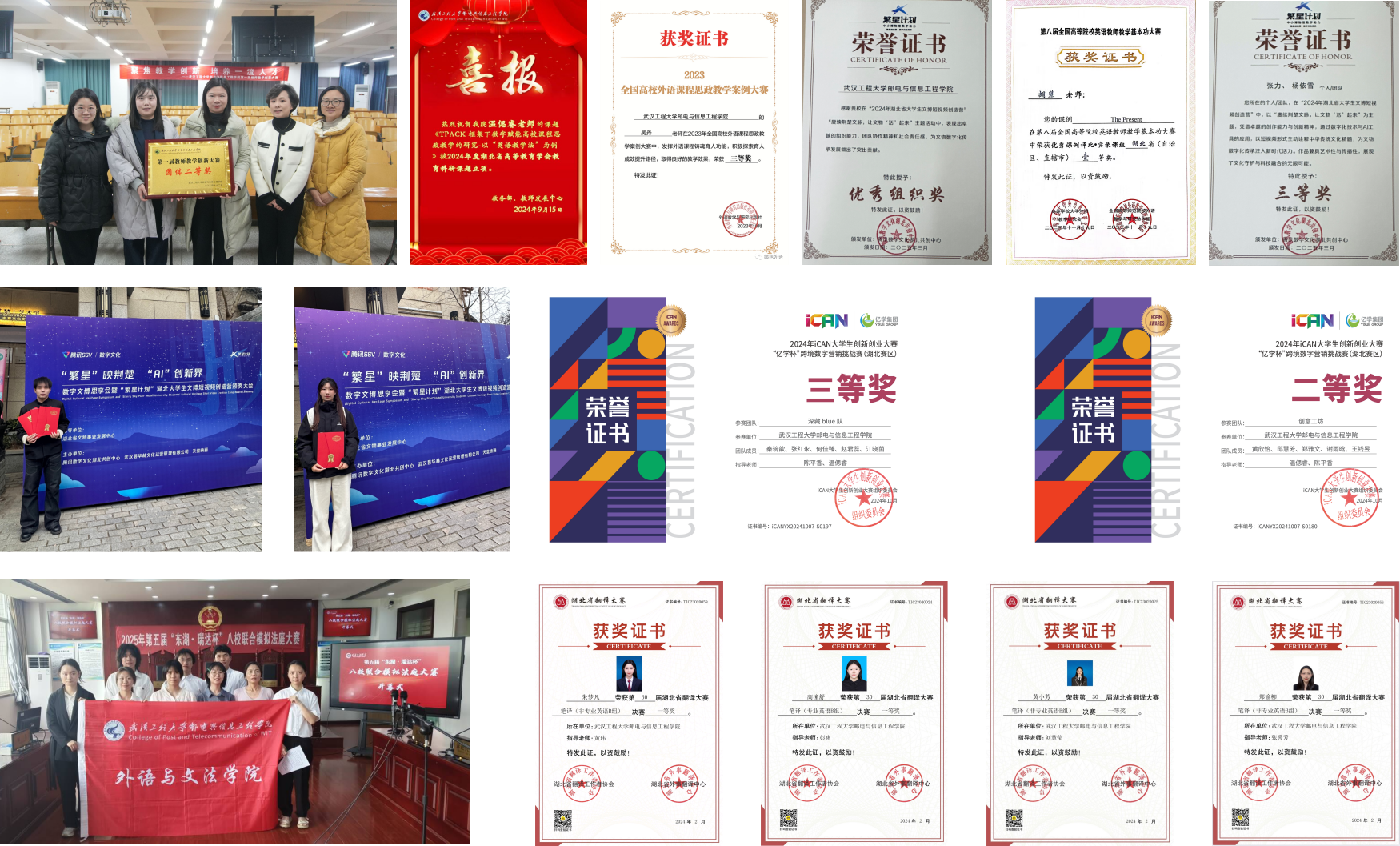除英语和法学专业课程外,武汉工程大学邮电与信息工程学院外语与文法学院面向全院开设大学语文、大学英语、职场英语、大学日语、大学法语、大学俄语等公共课程。近年来,学院教学成果丰硕,英语专业获批湖北省一流本科专业建设点、“大学外语”团队获批湖北省优秀教学团队、“大学英语”获批湖北省一流本科课程、英语专业教研室获批湖北省优秀基层教学组织、法学专业以习近平法治思想为引领,构建“理论 + 实践 + 思政”课程体系,成果显著。