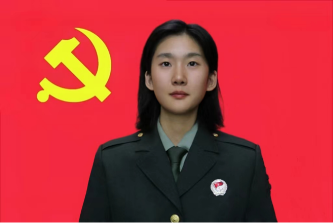 杨震芳,2021级法学专业学生,中共党员,2018年9月至2023年9月参军入伍,荣立个人三等功。