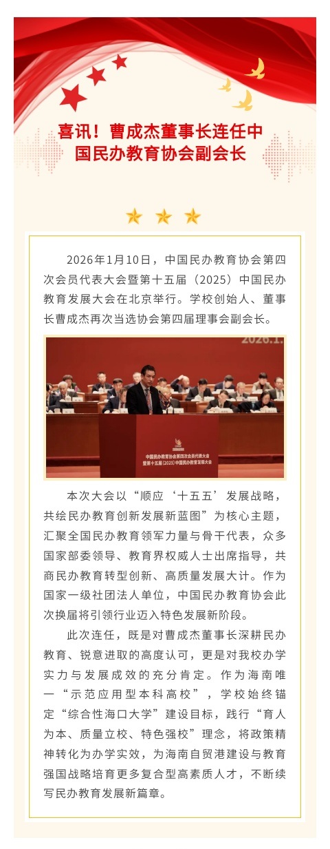 喜讯!曹成杰董事长连任中国民办教育协会副会长