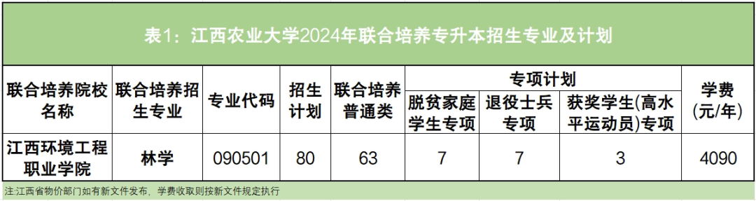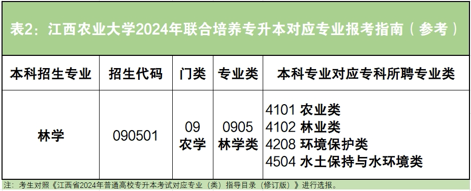 三2024年我校与江西环境工程职业学院合作,江西农业大学2024年与江西环境工程职业学院联合培养专升本招生专业及计划见表1,江西农业大学2024年与江西环境工程职业学院联合培养专升本对应专业报考指南(参考)见表2。