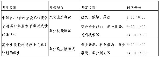 考生类别:中职生、社会考生及无法提供普通高中学业水平考试成绩的高中生。