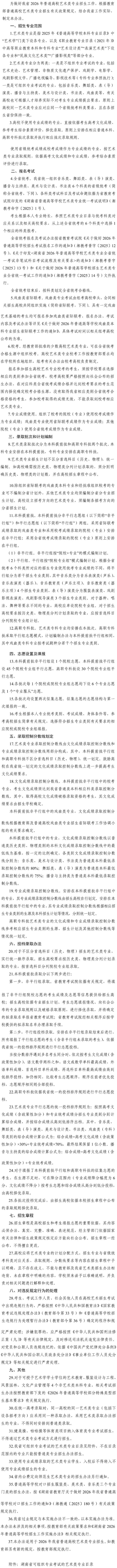 湖南省2026年普通高等学校艺术类专业招生工作实施办法