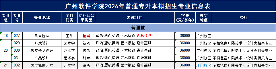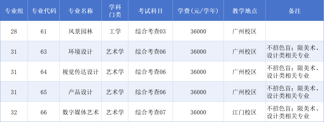 3.动画专业不招色盲色弱考生;环境设计、视觉传达设计、数字媒体艺术、产品设计等专业不招色盲考生。
