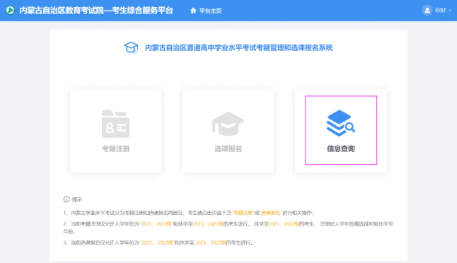 考生凭身份证号和密码登录“内蒙古自治区普通高中学业水平考试考籍管理和选课报名系统”→“信息查询”→“成绩信息”即可查看成绩。