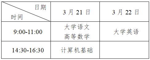 统一考试科目和时间安排