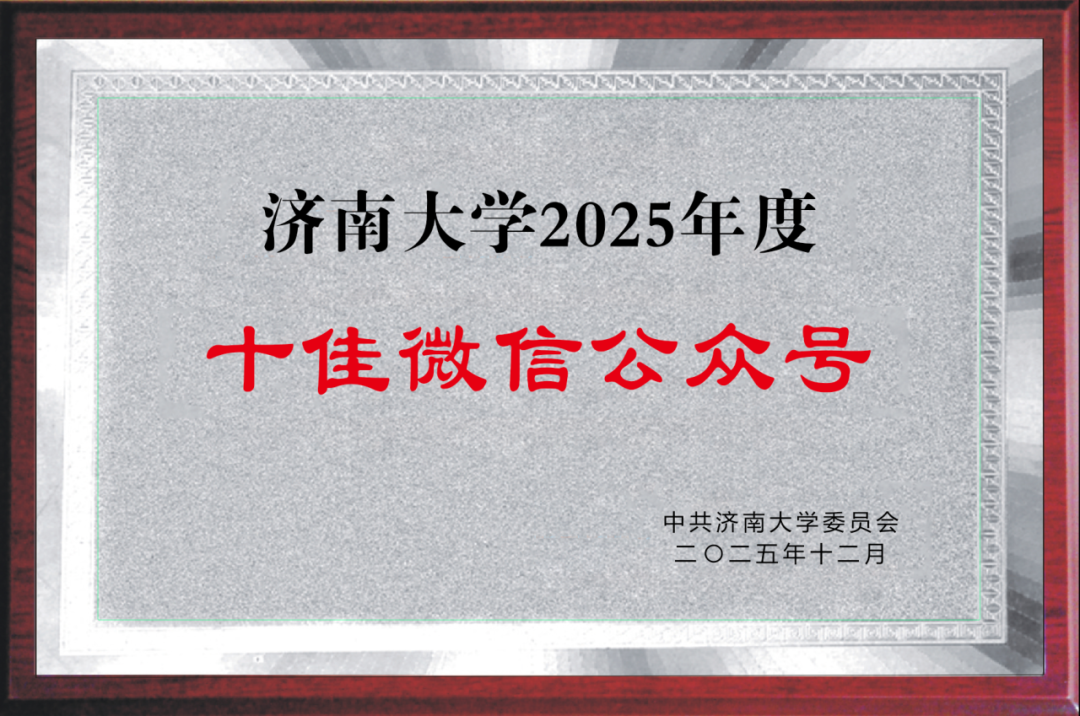 12月,济南大学党委宣传部授予“2025年度十佳微信公众号”——校内权威认可,是对我们十年深耕新媒体阵地的最高褒奖!