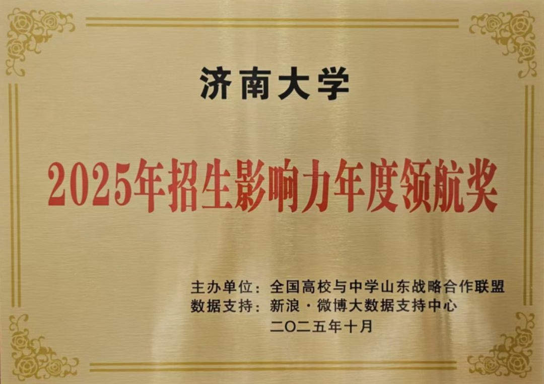 10月,全国高校与中学山东战略合作联盟授予“2025年招生影响力年度领航奖”——彰显我校在招生宣传领域的引领地位与行业认可度!