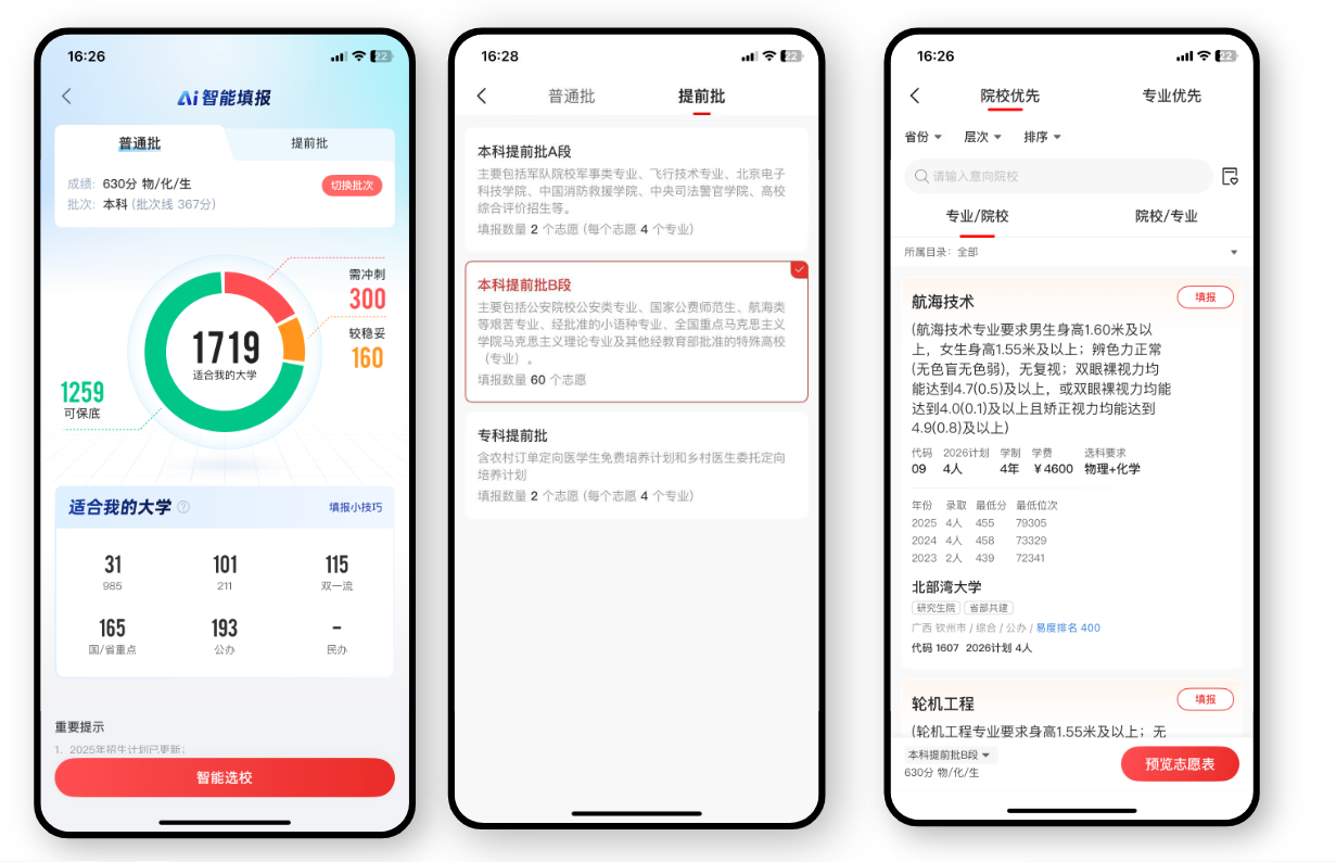 本次辽宁本科提前批的调整,为考生提供了志愿的双重机会,考生和家长需做好A、B两段的协同规划,同时规避关键风险,利用优志愿APP智能工具精准规划,结合自身职业规划与分数实力科学填报,方能在提前批录取中抢占先机,实现升学目标。