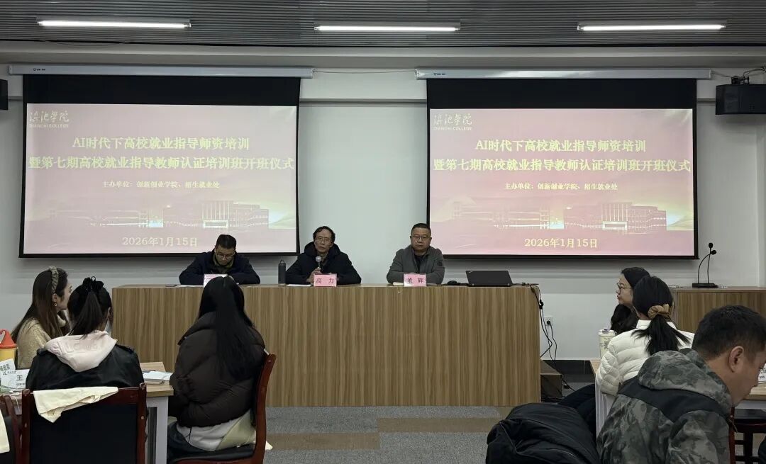 为主动适应人工智能时代对高校就业指导工作提出的新挑战、新要求,持续提升我校就业指导师资队伍的专业素养与服务效能,2026年1月15日,招生就业处与创新创业学院联合组织的“AI时代下高校就业指导师资培训”顺利开班。来自全校各学院及就业工作相关部门的60余名教师参加培训。滇池学院副校长高力,创新创业学院院长董辉、招生就业处处长蔡煜出席开班仪式。
