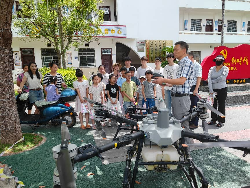 学生用无人机进行病虫害防治,助力乡村产业振兴