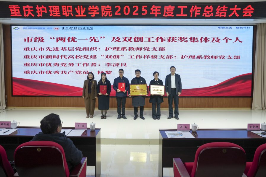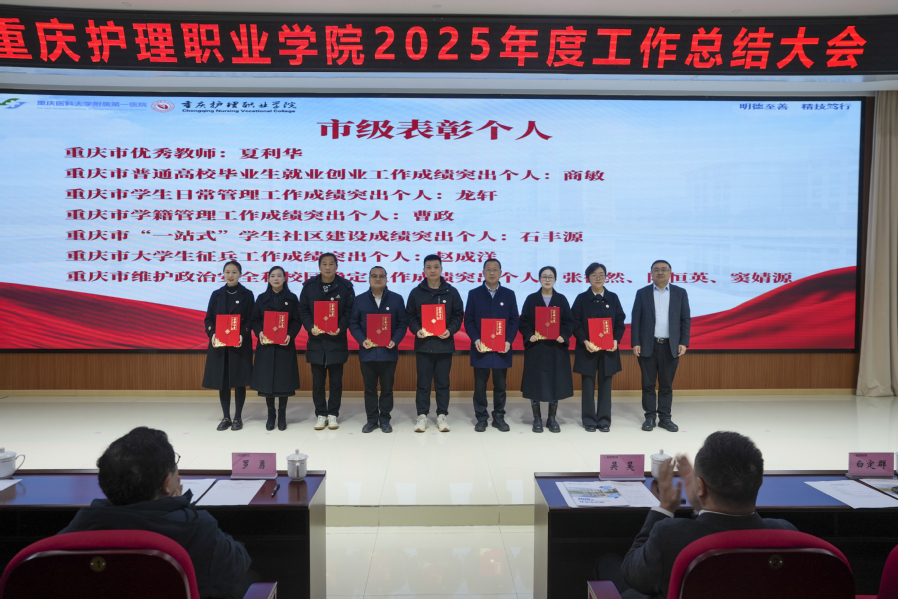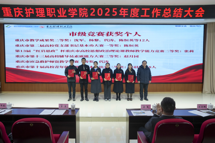 1月20日上午,学校在明德楼104学术报告厅召开2025年度工作总结大会。学校举办方重医附一院党委书记吴昊,重医附一院医院管理研究所所长、学校理事长罗勇,重医附一院副院长白定群,学校全体校领导及教职工参会。会议由学校党委副书记、副校长唐全主持。