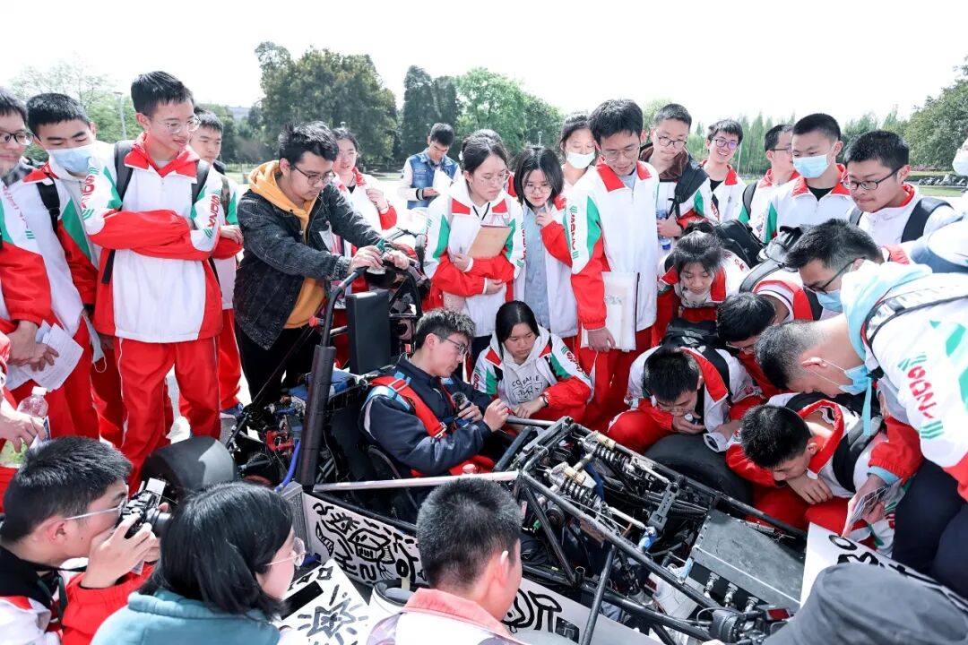 车队成员为参加电子科大校园开放日的高中生展示讲解