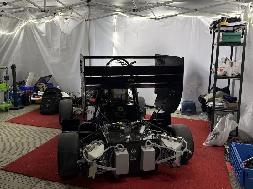 夜幕降临,合肥的气温骤降至10℃以下,车队的维修帐篷里却灯火通明。队员们轮流值守,每隔一小时就与加工商沟通进度。螺杆送达时已子夜时分,维修帐篷已经清场,大家在酒店组装调试零件,抢在清晨6点冲进赛场装车调试。