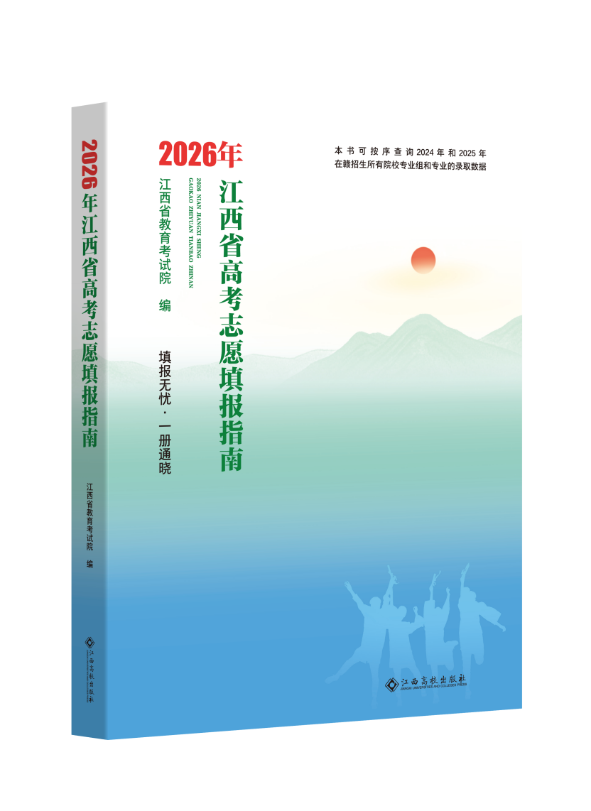 为进一步做好我省普通高校招生考试志愿填报工作,江西省教育考试院继续组织编写《2026年江西省高考志愿填报指南》,该书主要内容包括2026年我省高考招生政策、投档录取办法、志愿填报流程和技巧及注意事项,2024年和2025年我省高考录取数据及分析,高校分类、专业特色及就业方向等方面,是指导考生及家长科学、合理填报高考志愿的重要工具书。该书委托江西高校出版社出版,由江西省邮政公司公开发行。