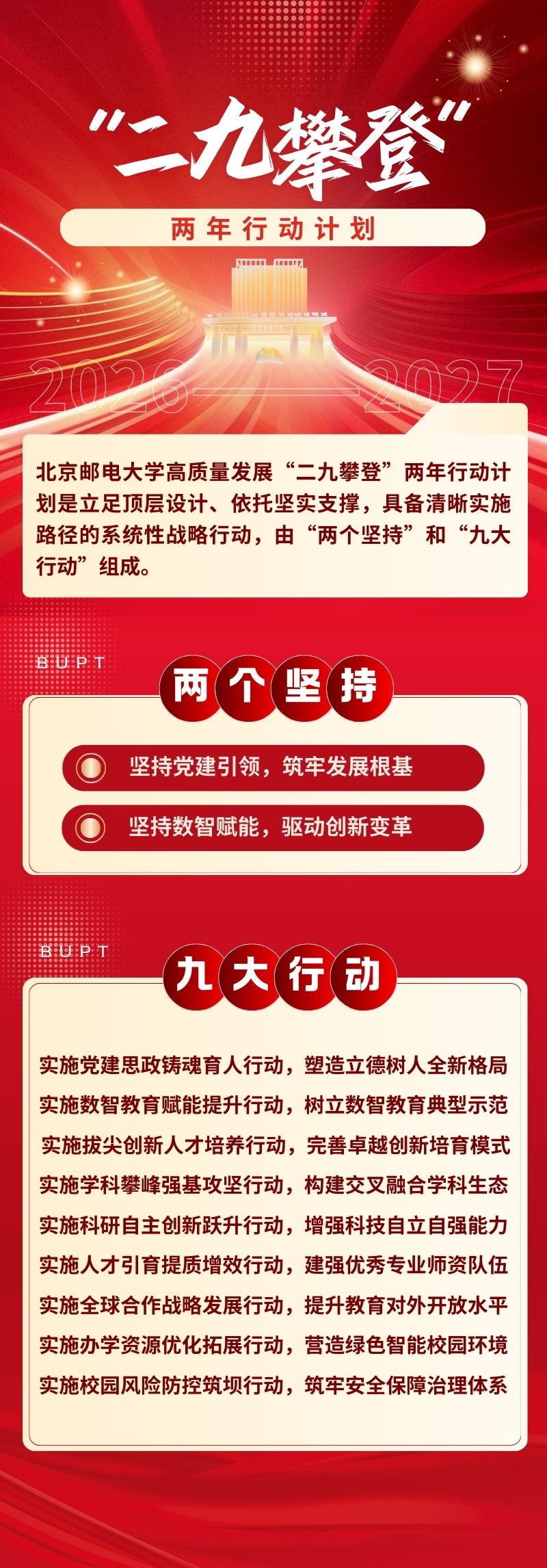 此次会议的召开,既是对过往工作的全面总结,更是对下一阶段发展任务的战略谋划与全面部署。全校上下将以此次会议为新的起点,进一步统一思想、凝聚力量、真抓实干,全面推动“二九攀登计划”落地生根,奋力谱写“教育强国,北邮有为”的崭新篇章,为加快建设信息科技特色世界一流大学,服务强国建设贡献更大北邮力量。