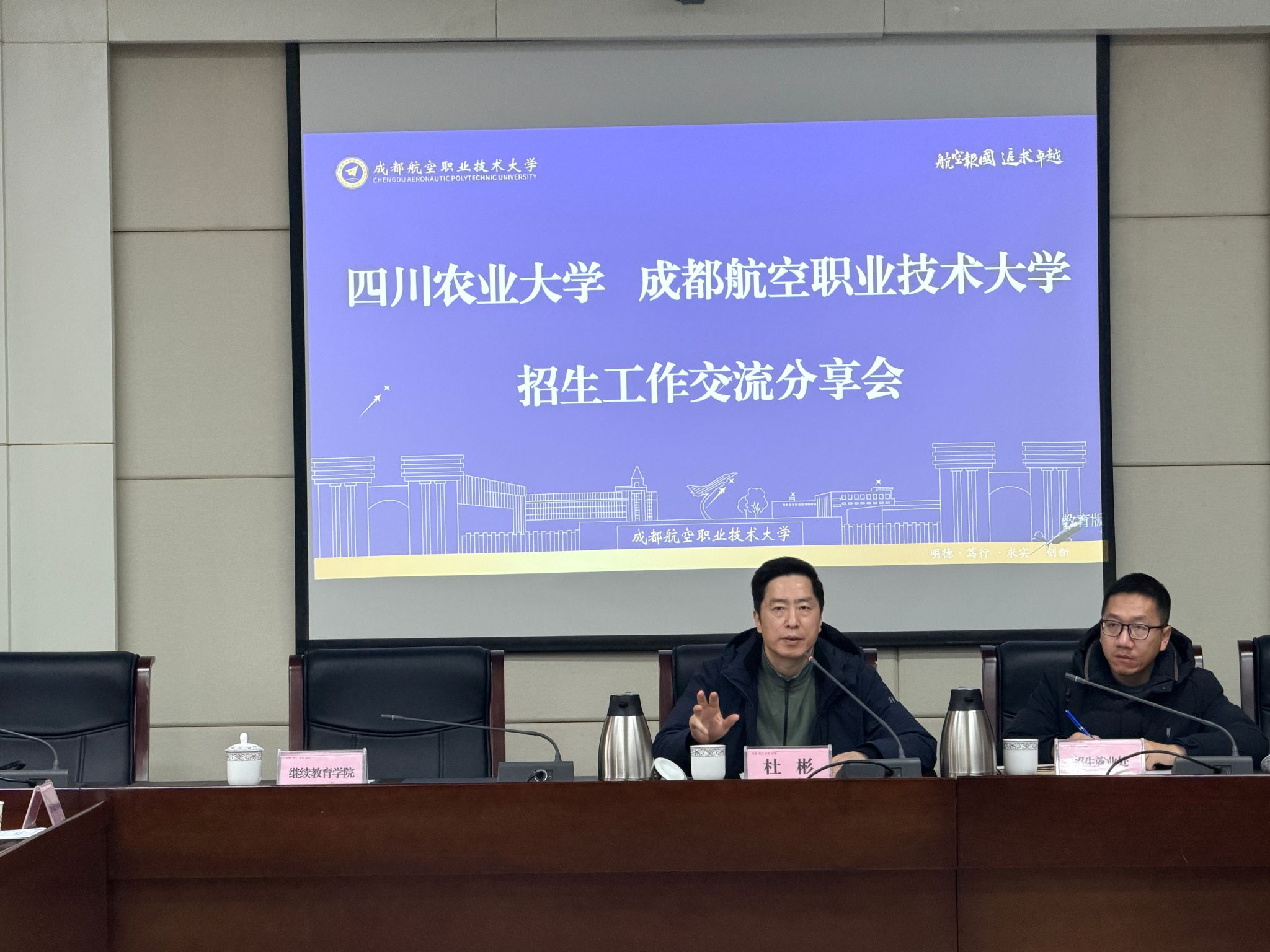 2026年1月14日上午,我校在德胜楼第二会议室举办招生工作经验交流座谈会,特邀四川农业大学继续教育学院院长(原招生就业处处长)杜彬,分享招生经验。我校招生就业处、基础教学部、各二级学院党组织负责人及全体负责招生工作的教师参加会议。
