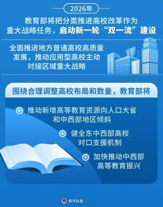 高考分数卡在中间段,有多尴尬?上不了985、211顶尖名校,不甘心屈居普通本科,想冲优质高校怕滑档,保守填报又浪费分数,每年都有无数考生栽在“志愿博弈”上。但是2026年,中间段考生转机来临!——教育部官宣第三轮双一流评选已启动,建设周期覆盖2026-2030年,新增资源侧重中西部、人口大省,淡化身份标签、聚焦学科实力与国家战略适配。