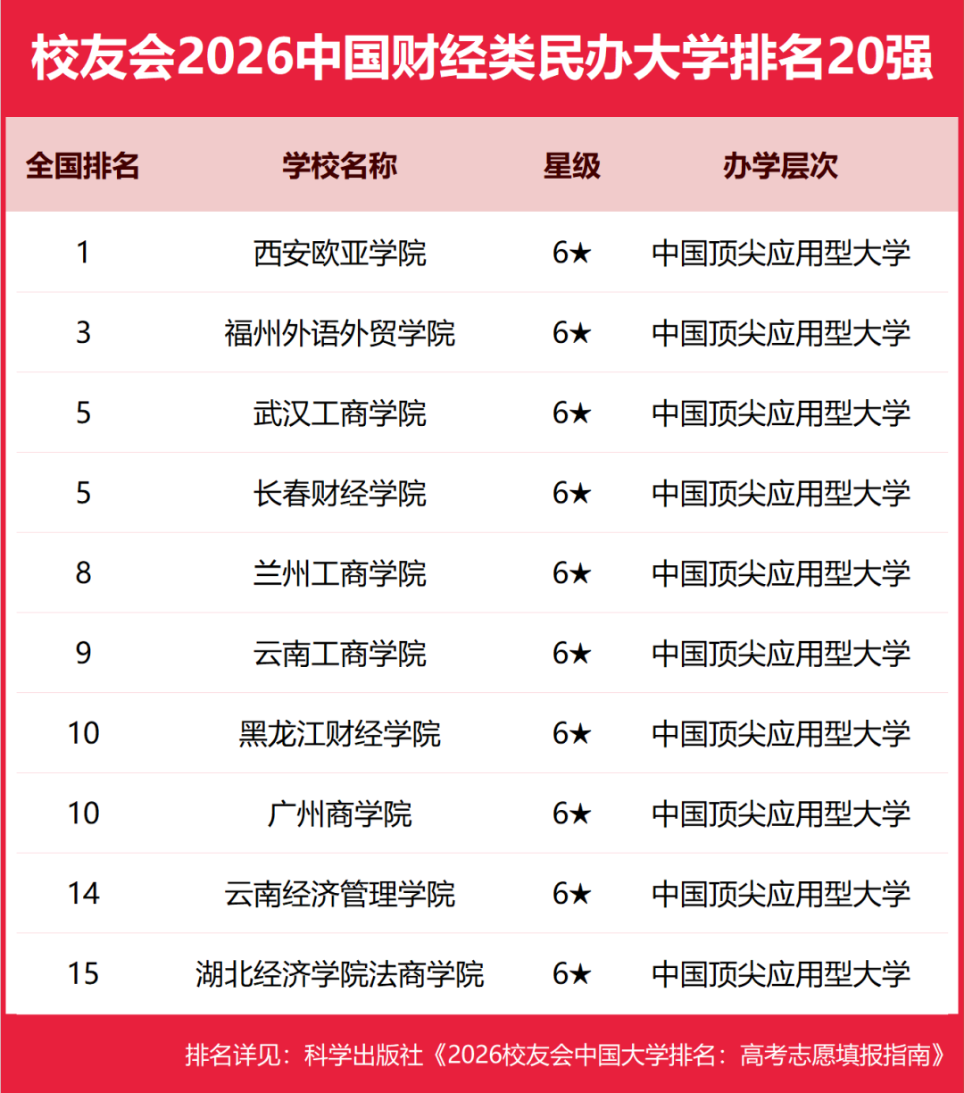 校友会2026中国财经类民办大学排名(部分)