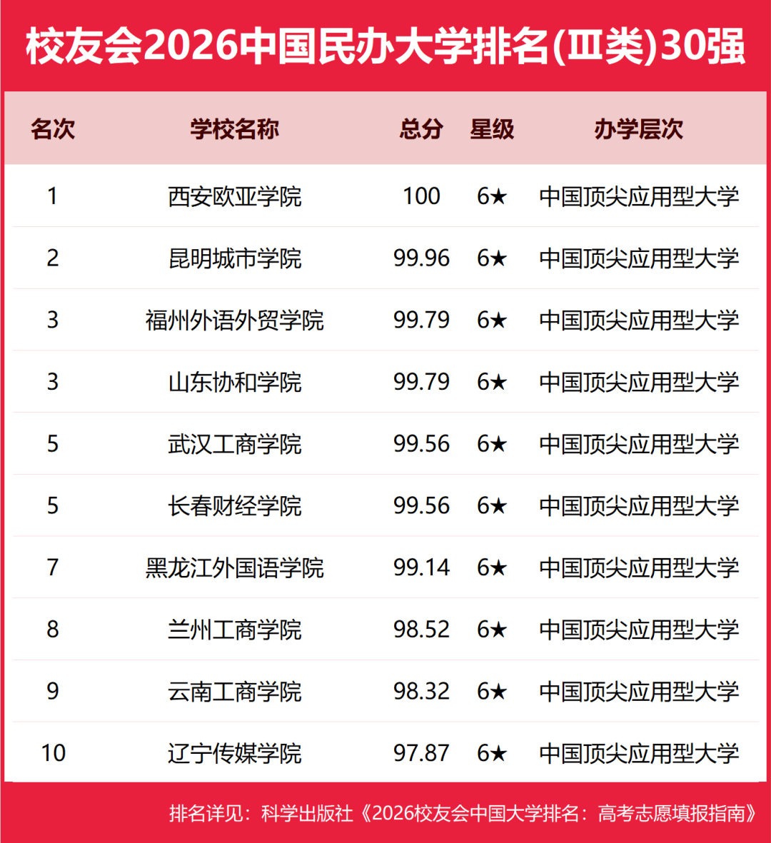 校友会2026中国民办大学排名Ⅲ类(部分)