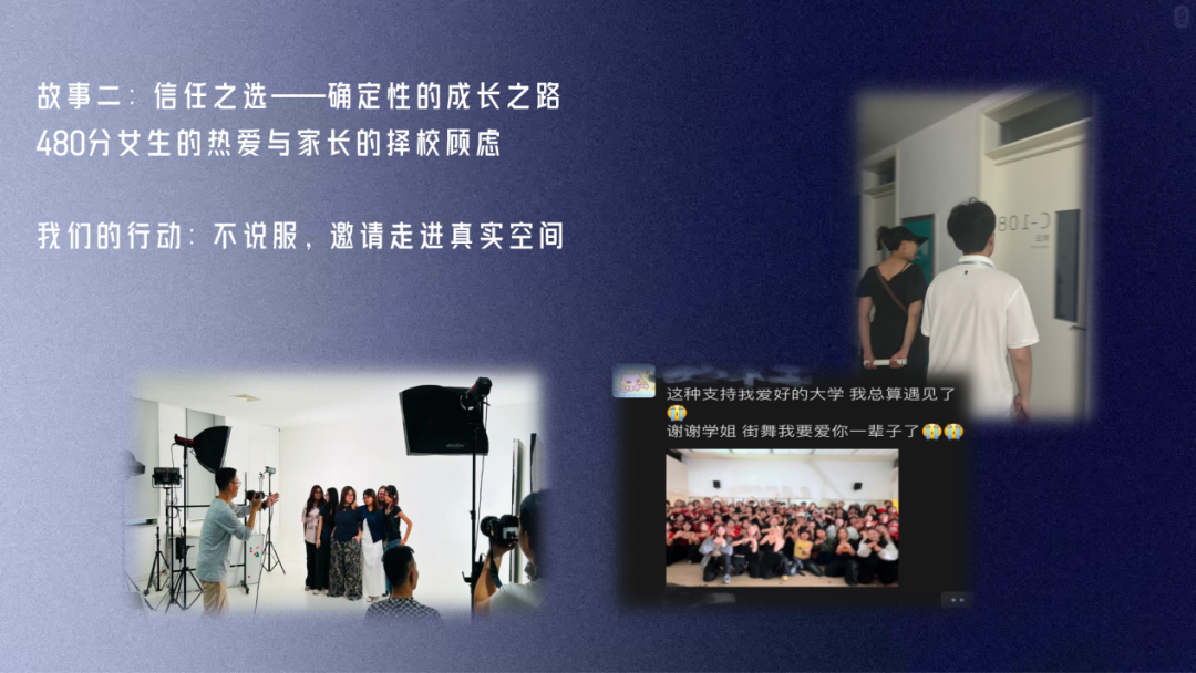 但在一个完整的招生季结束后,当她重新整理那些照片与记忆时,才意识到:正是这些微小而重复的瞬间,拼接起了一次次关于选择、信任与成长的关键时刻。