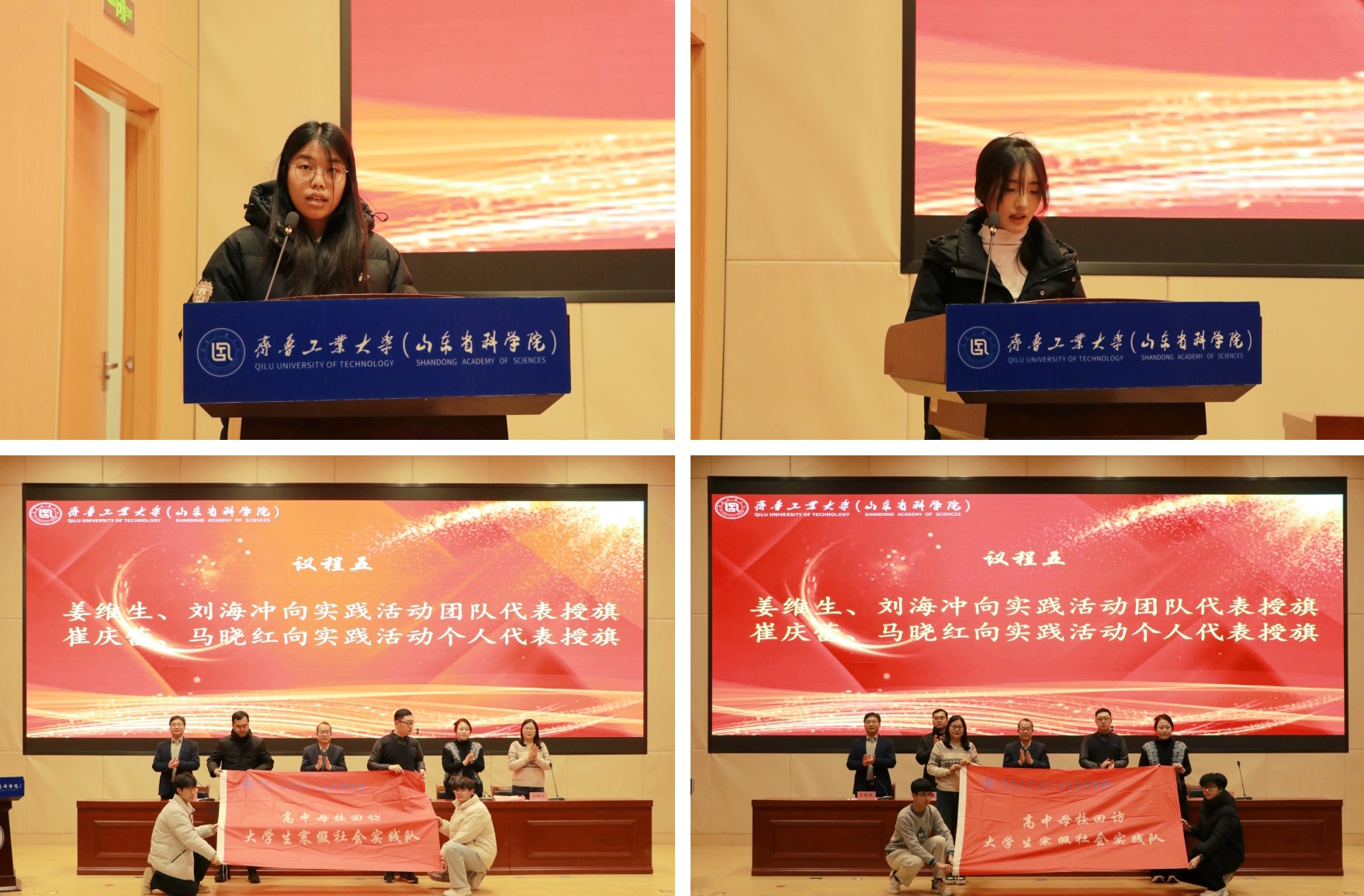启动仪式上,第七届母校回访活动优秀代表孙曼卿分享活动经验和感悟,第八届母校回访活动代表高俊含做表态发言,与会嘉宾共同为即将出征的团队及个人代表授旗。