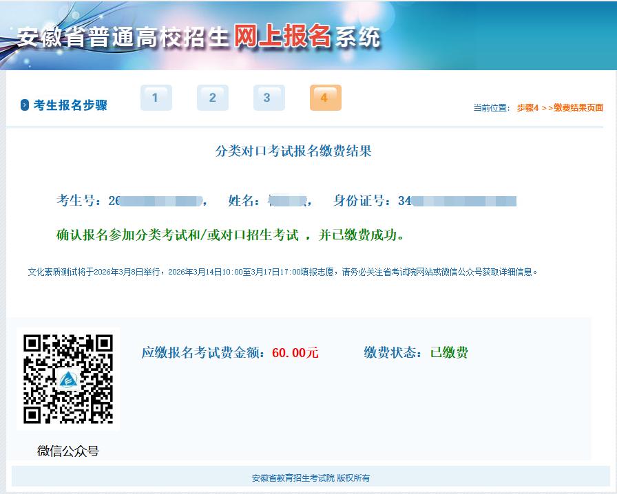 6.再次登录报名系统查询自己的报名和缴费状态。如果缴费成功,将会出现以下报名成功的页面。