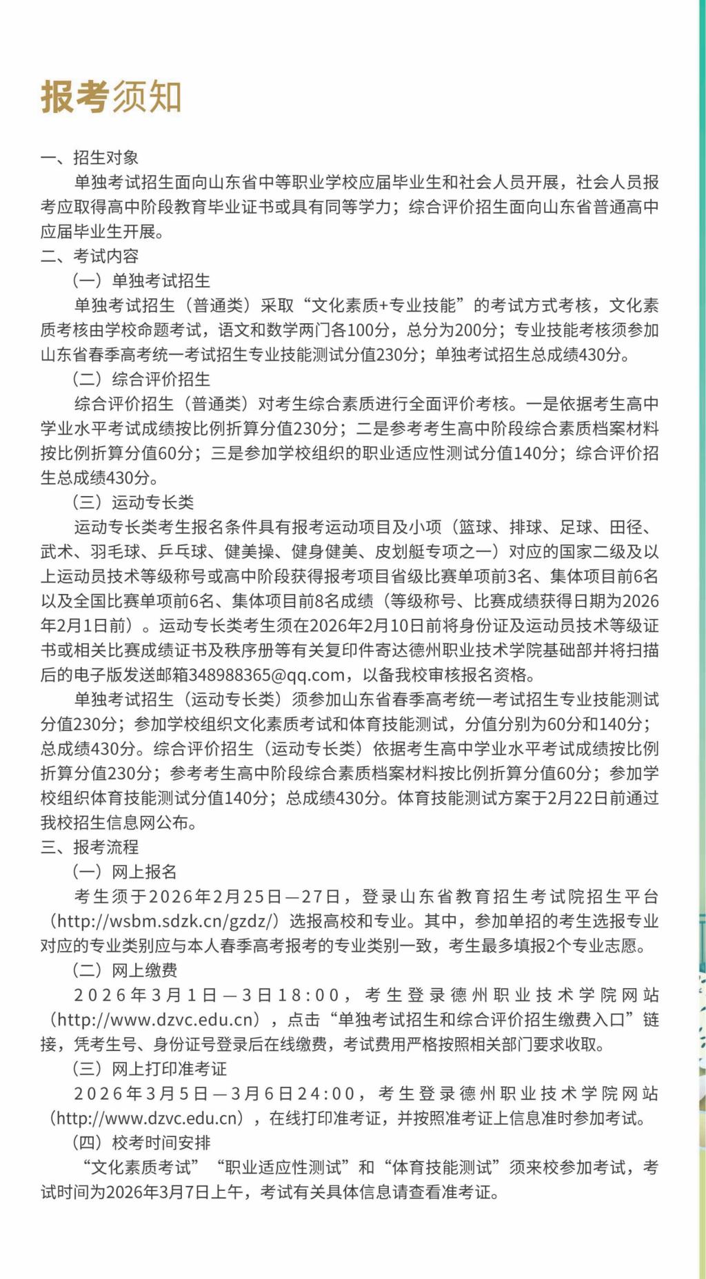 德州职业技术学院2026年高职(专科)单独考试招生和综合评价招生简章