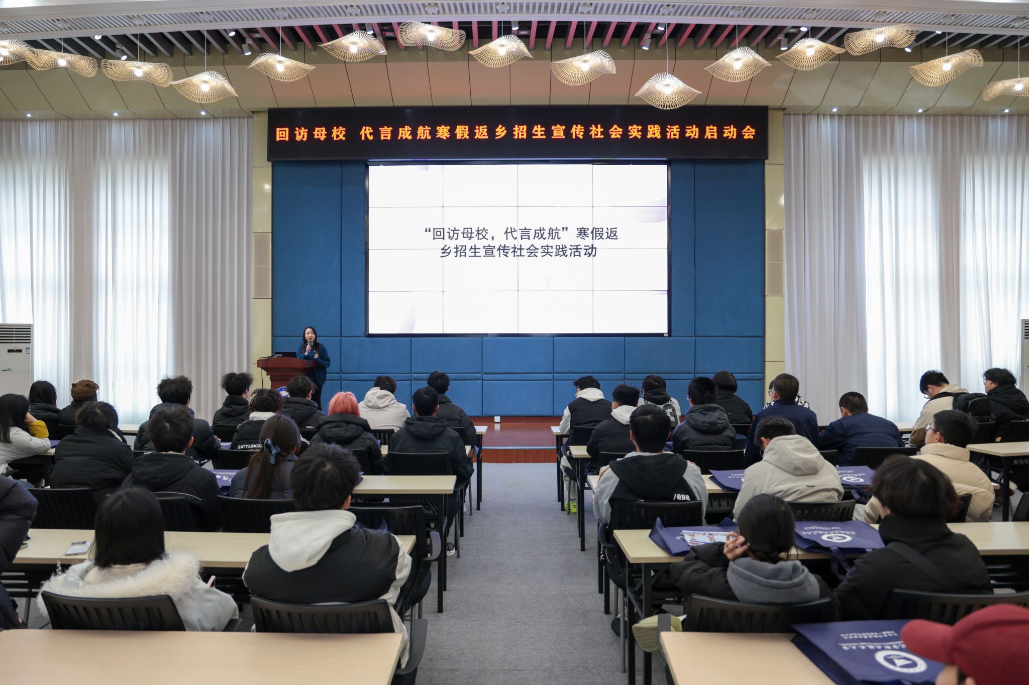 1月21日,在学校学生工作部与招生就业处的统筹下,我校“回访母校,代言成航”寒假返乡招生宣传社会实践活动启动会在求实报告厅举行。活动得到各二级学院积极响应,共组建54支实践团队,近300名学子踊跃参与,他们将利用寒假返回全国各地高中母校,面向广大学弟学妹,生动讲述成航职教本科特色,精准解读招生政策,用亲身经历传递成航魅力,以青春之声为母校代言。