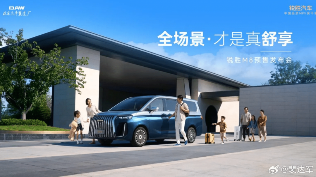 BAW锐胜MPV系列:聚焦实用乘用 / 商用场景,在售 M7、M8 车型提供纯油、增程、纯电、CNG 等全动力选择,适配不同出行与运营场景。
