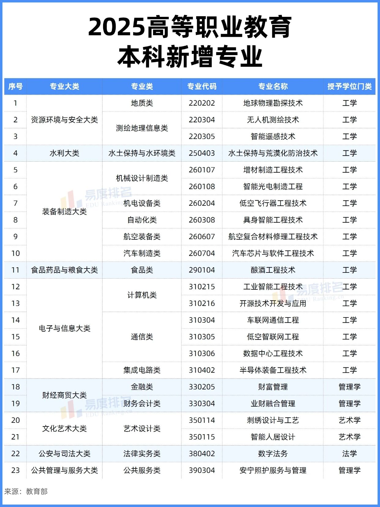 2025年职业本科新增专业的调整,既是我国产业结构升级的“镜像”,也是职业教育内涵发展的“里程碑”。从低空经济的技术突破到安宁照护的民生温度,从半导体装备的卡脖子攻坚到非遗传承的文化坚守,这些专业不仅为新质生产力提供了人才支撑,更让职业教育在服务国家战略、回应社会关切中展现出独特价值。未来,随着职业教育类型特色的持续强化,更多“接地气、有温度、能引领”的专业将不断涌现,为中国式现代化建设注入更强劲的人才动能。