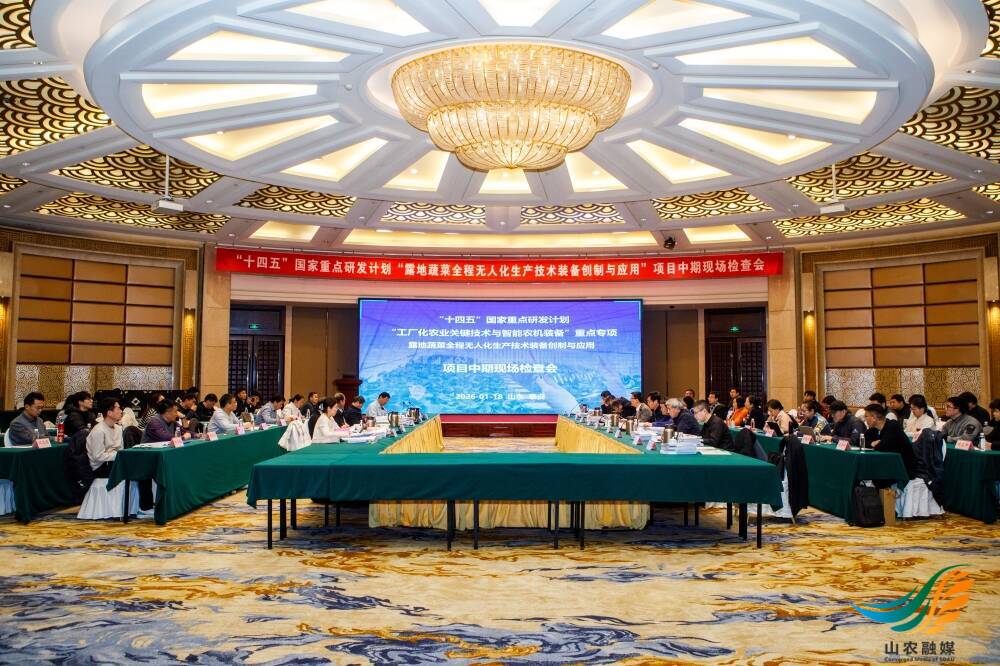 山农融媒1月25日讯近日,“十四五”国家重点研发计划“工厂化农业关键技术与智能农机装备”重点专项“露地蔬菜全程无人化生产技术装备创制与应用”项目中期现场检查会召开。中国农业机械化科学研究院集团有限公司总经理、项目负责人苑严伟,山东农业大学校党委常委、副校长王勇出席会议并致辞。