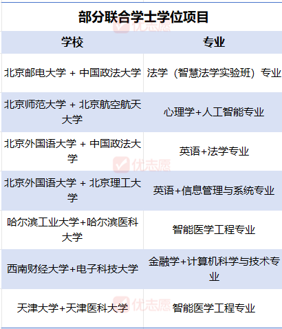 部分联合学士学位项目会直接通过高考统一招生,考生在志愿填报阶段,可直接在招生专业目录中找到对应联合培养专业,凭借高考成绩填报录取。比如