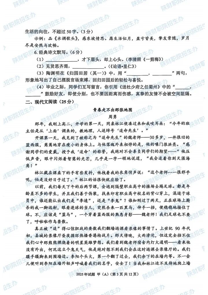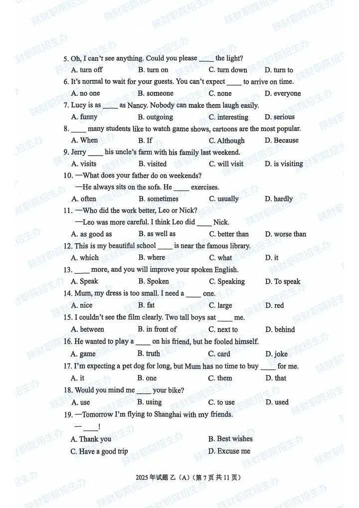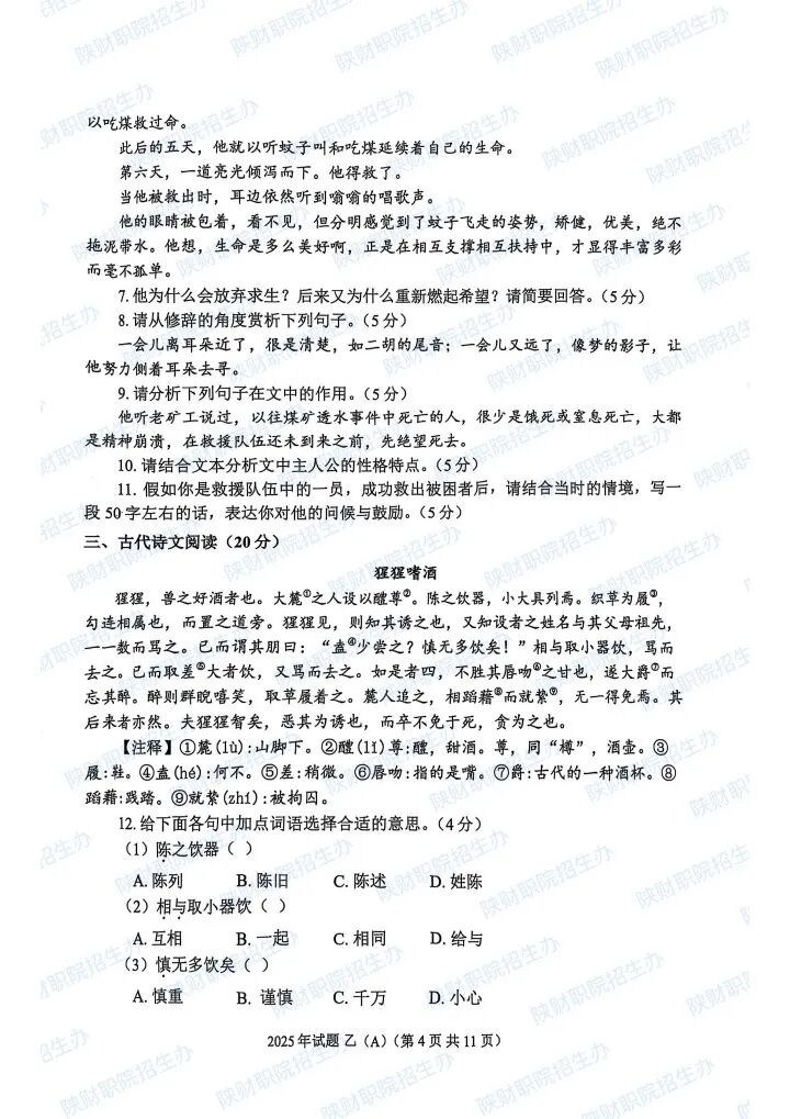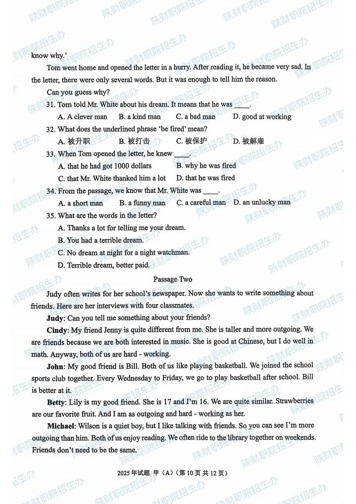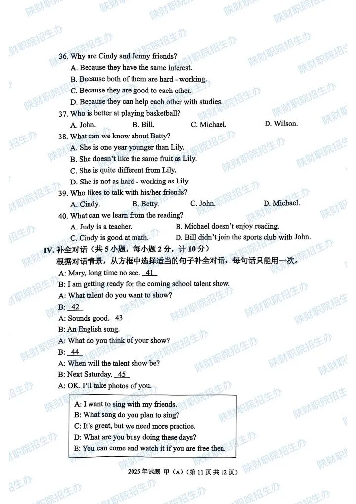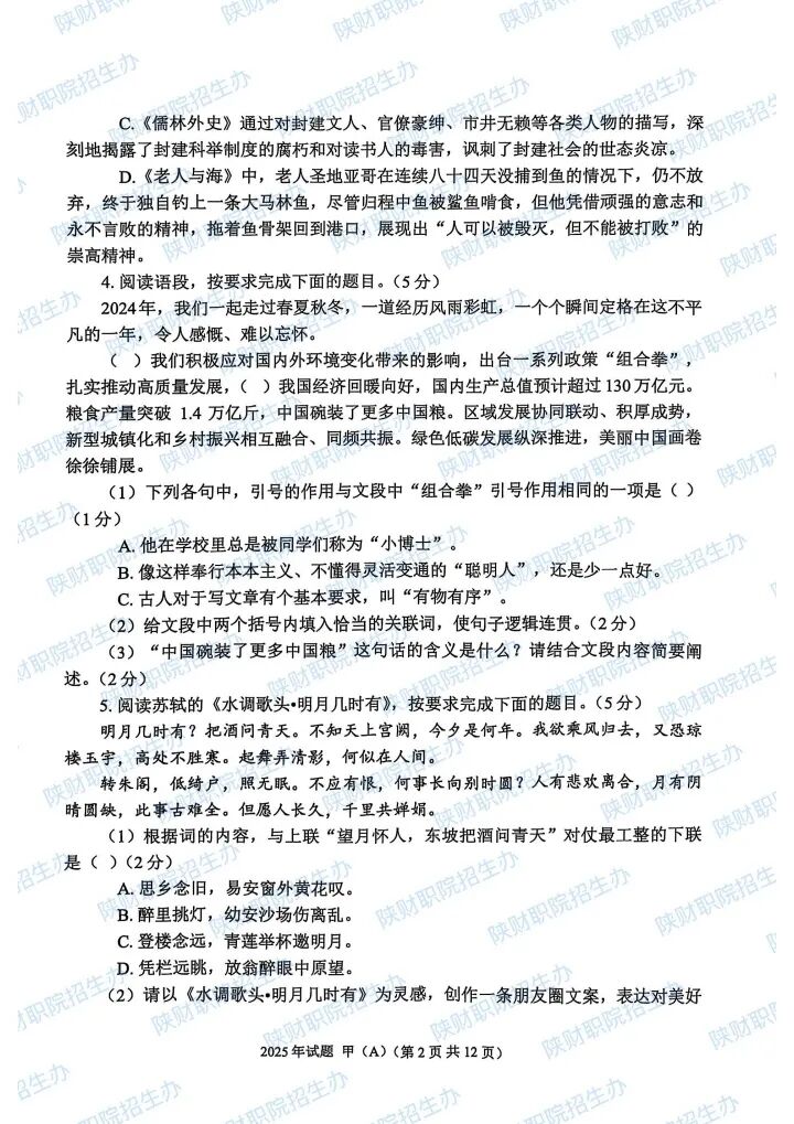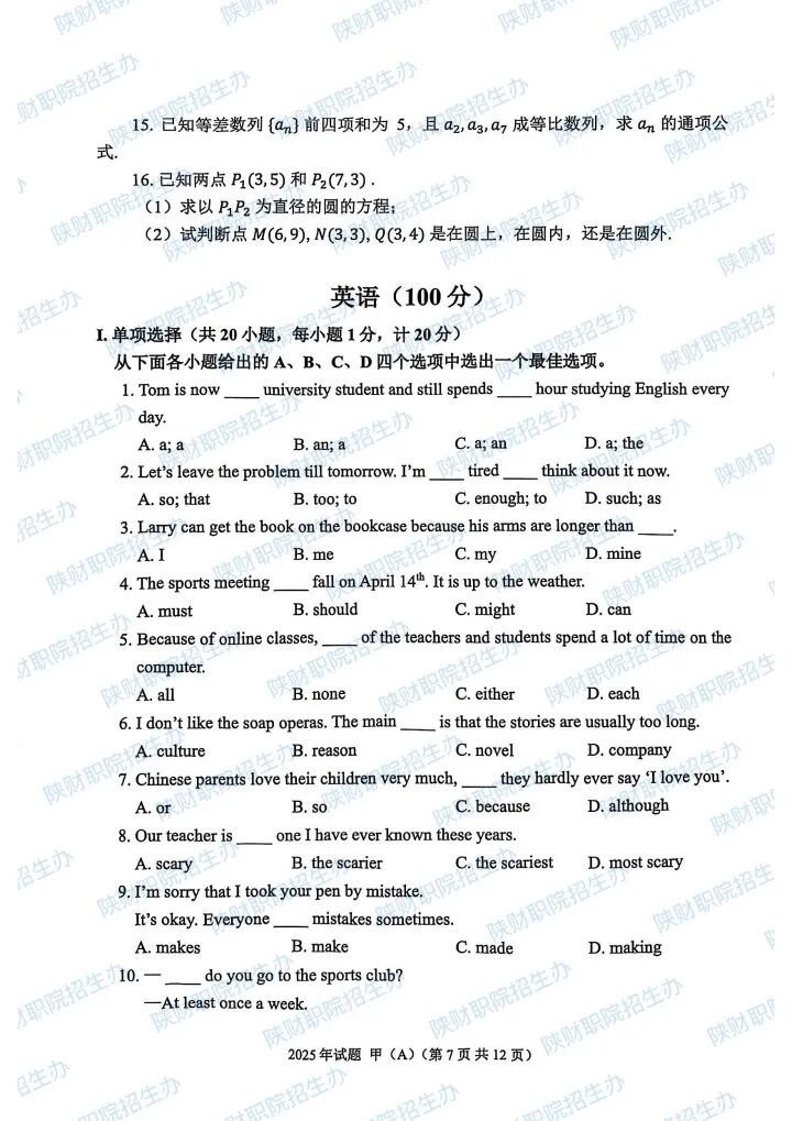 2025年陕西省高职分类招生示范高职院校单独考试试题甲卷-普高生.pdf2025年陕西省部分高等职业院校自主招生考试乙卷-三校生.pdf2024年陕西省高职分类招生示范高职院校单独考试试题甲卷-普高生.pdf2024年陕西省高职分类招生示范高职院校单独考试试题乙卷-三校生.pdf2023年陕西省部分高等职业院校自主招生考试甲卷-普高生.pdf2023年陕西省部分高等职业院校自主招生考试乙卷-三校生.pdf2022 年陕西省部分高等职业院校自主招生考试 甲卷-普高生.pdf2022 年陕西省部分高等职业院校自主招生考试 乙卷-三校生.pdf2021年陕西省部分高等职业院校自主招生考试甲卷-普高生.pdf2021年陕西省部分高等职业院校自主招生考试乙卷-三校生.pdf