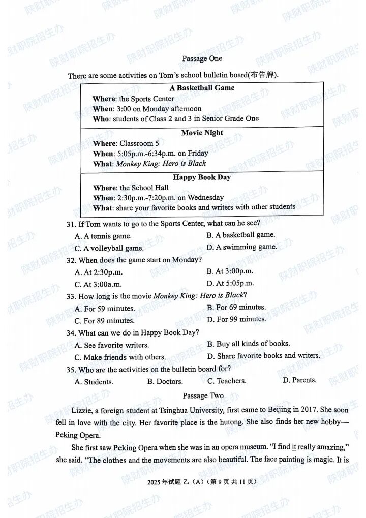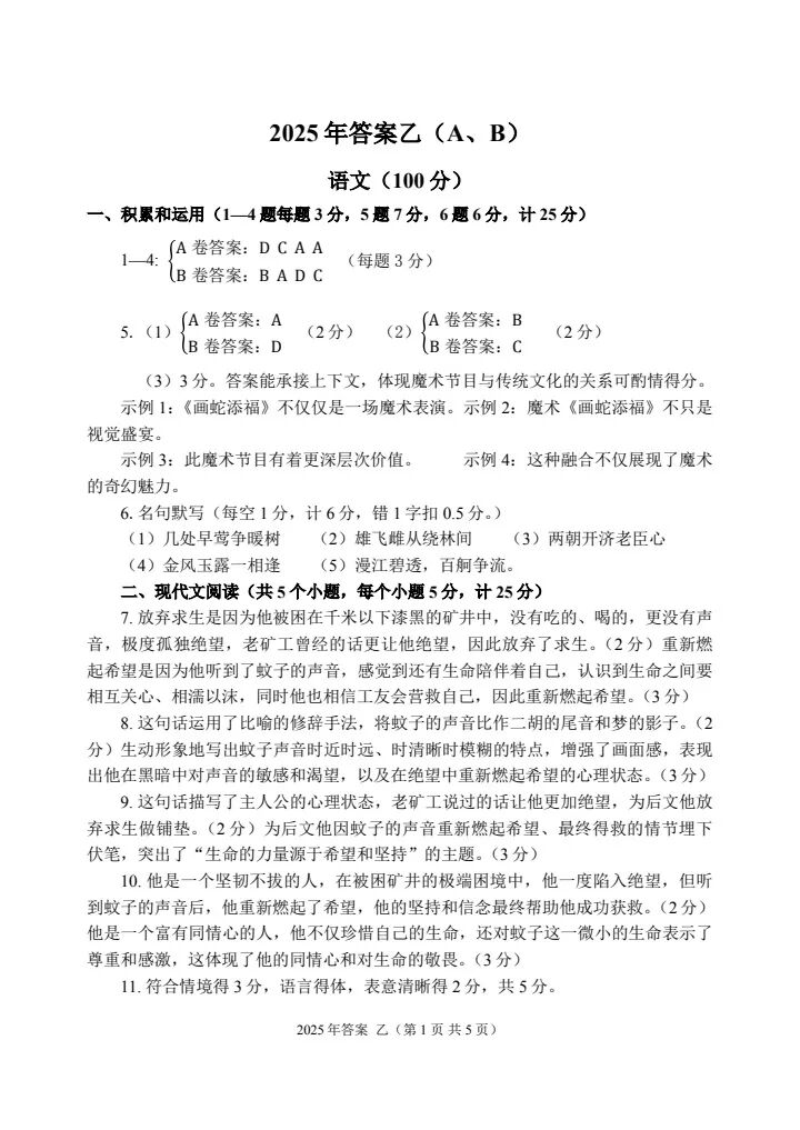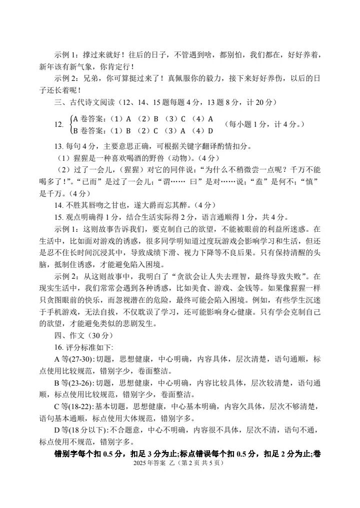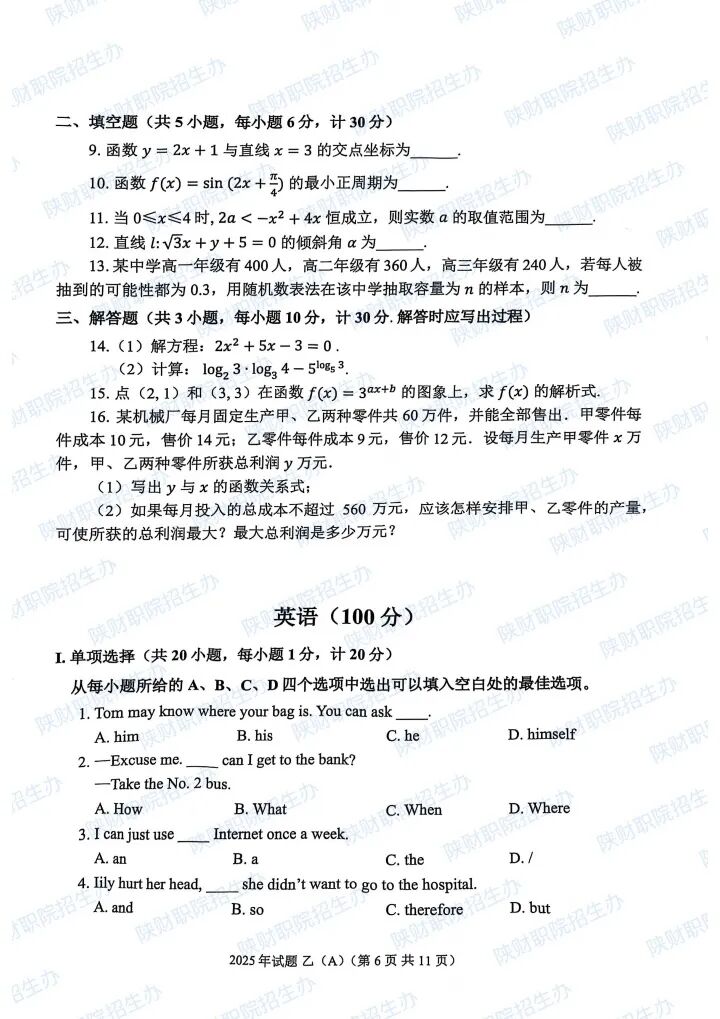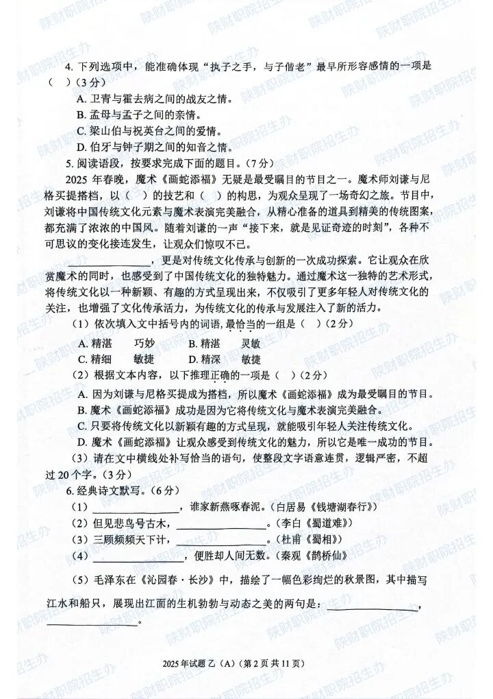 2025年乙卷—三校生