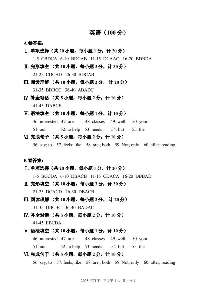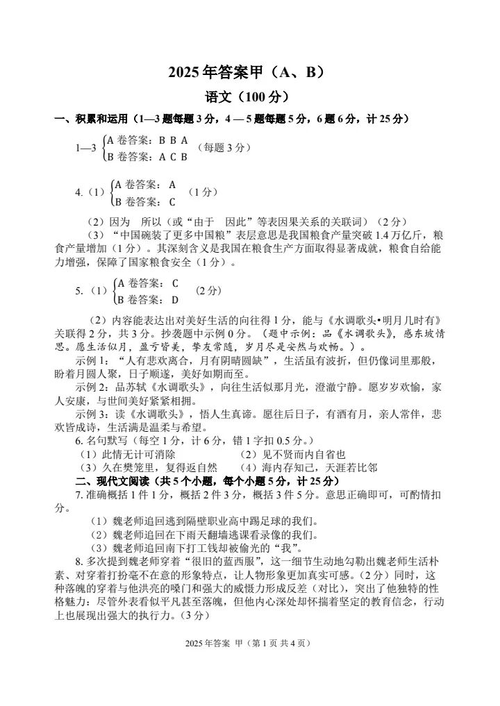 2025年甲卷—普高生